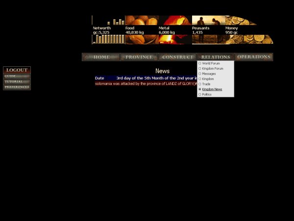 The Kingdom news shows who have been attacked or have attacked. Look here often so you can see how your kingdom mates are doing. If someone is attacked it's a good thing for your kingdom to retaliate if possible. Let the acres someone gain be expensive acres!