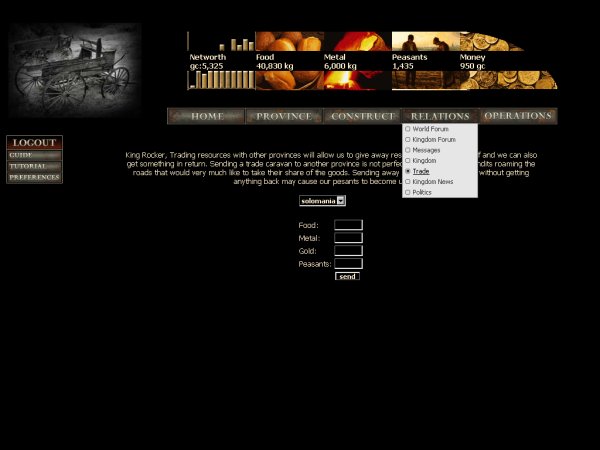 On the page for trading you may aid your kingdom mates. Remember, you need to have military before you can send aid, and the reciver also need to have military before he/she can recive from you. This is a good way to build a strong kingdom, by supporting eachothers.